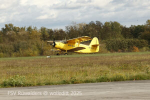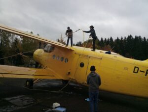 Am Saisonabschluss-Wochenende zeigte sich das Wetter ganz klar von seiner herbstlichen Seite. Das geplante Fallschirmspringen am Sonnabendvormittag fiel leider Wind und Wolken zum Opfer, sodass wir unsere AN-2 – nach einer gründlichen Wäsche – ins Winterquartier nach Großenhain verabschieden mussten, ohne noch einmal in die Luft zu gehen.